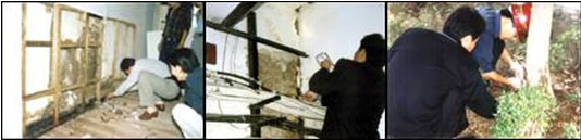 工作人員現(xiàn)場滅治白蟻